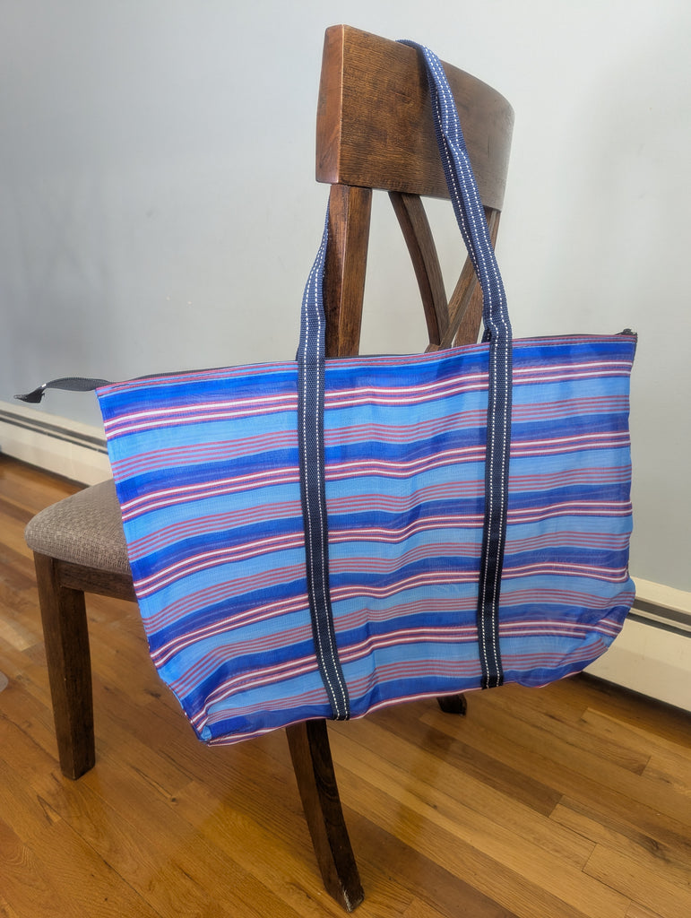 KA-TSI BAG No.8 茄芷袋(BLUE AND RED STRIPED WITH ZIPPER/SOFT HANDLE)